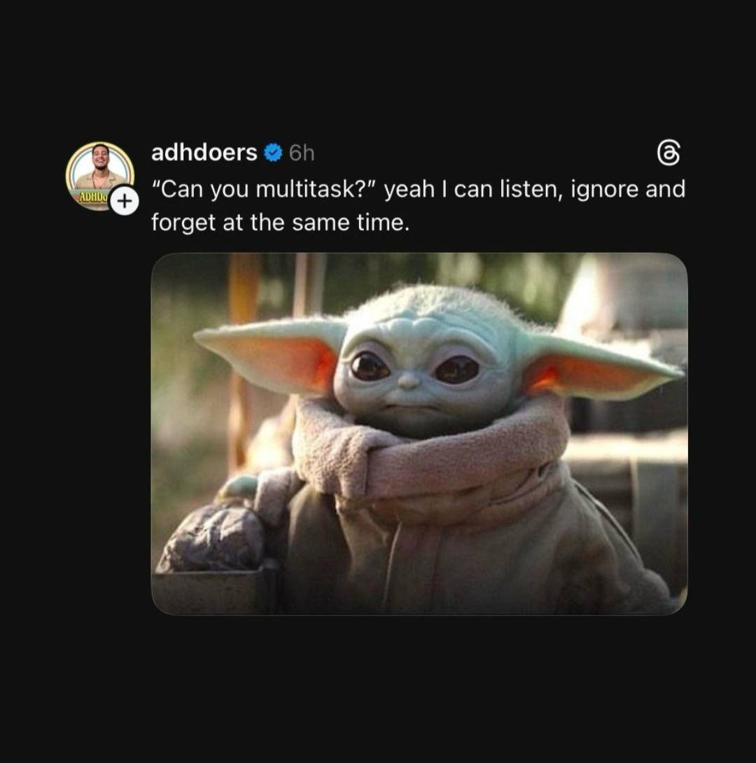 LadyButterfly she/her@piefed.blahaj.zoneEnglish · 2 days agoNot ADHD but yeah, same piefed.cdn.blahaj.zoneimagemessage-square2fedilinkarrow-up1153arrow-down14