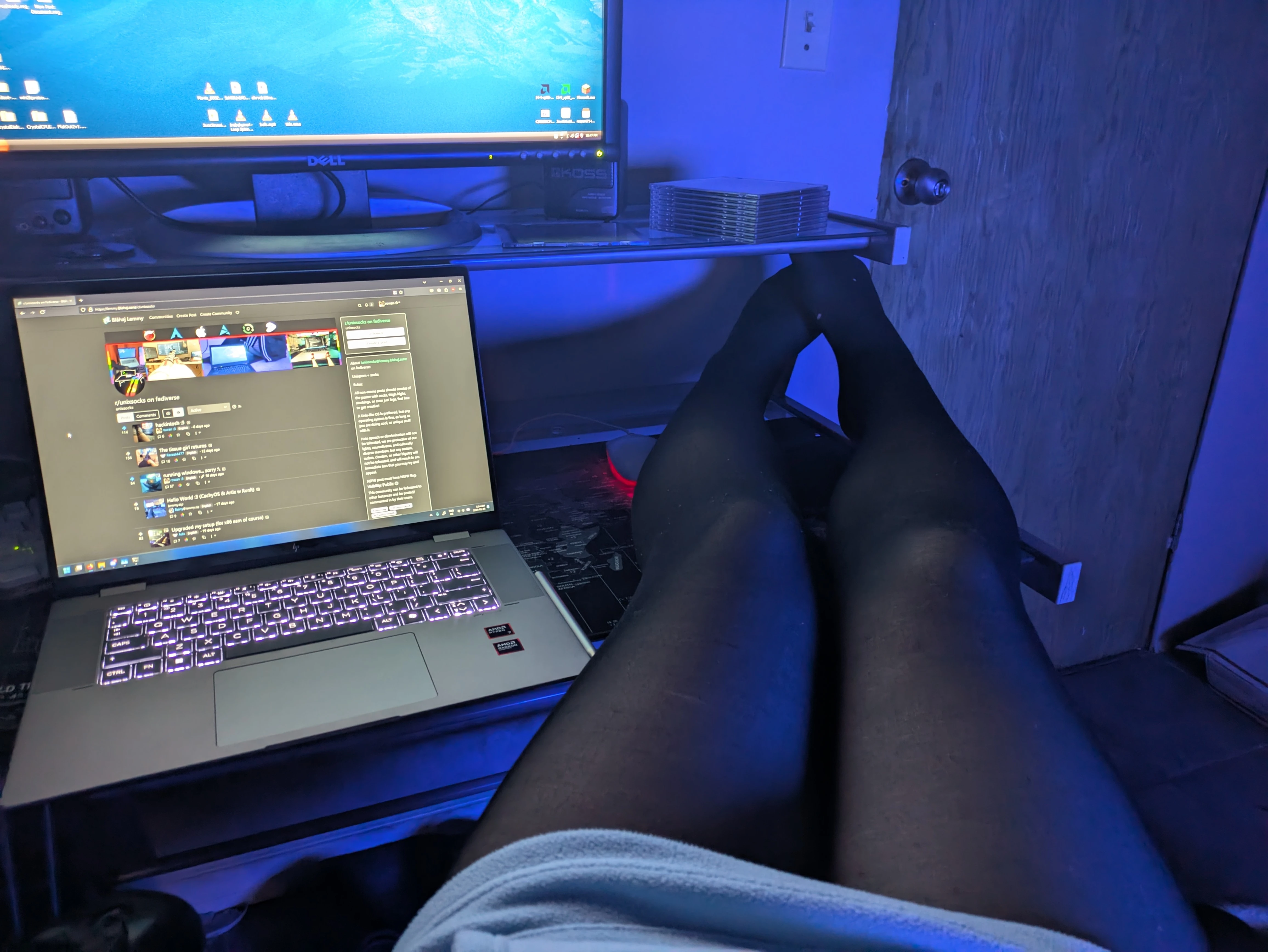 the laptop is an envy 2in1 16 with a ryzen 7 8840hs/16gb lpddr5/512gb ssd, the desktop is a custom built one with an opteron 165/2gb ddr1/200gb hdd running windows xp sp3 with the “zune” theme, monitor is a dell 2405fpw. both are windows, sorry 3: