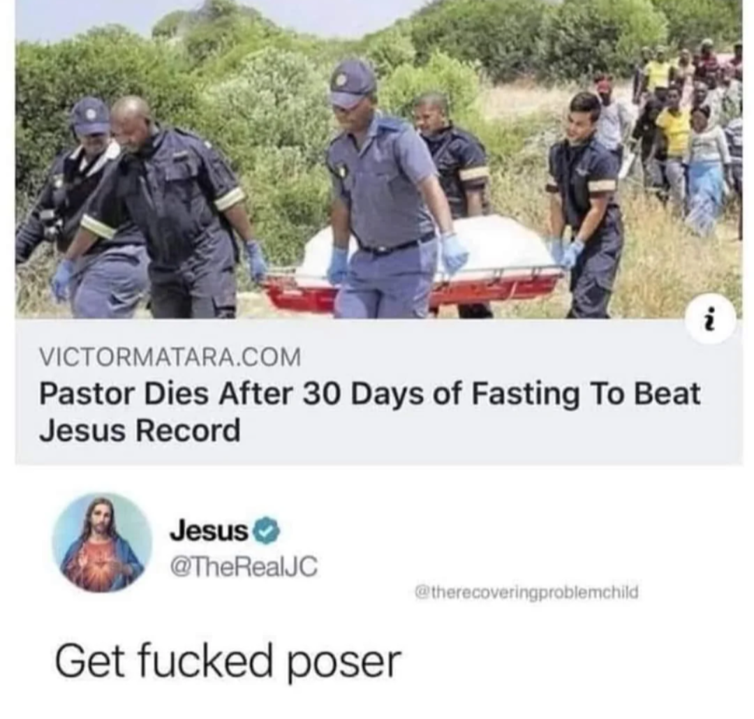 There was a whole tag on the subreddit for the “longer then jesus club”. For the vast majority of people it’s dangerous, but if you have the weight to lose, drink plenty of water and take salt, magnesium and potassium supplements, one month is fine. Humans, along with most animals, are surprisingly resilient to starvation, because of course we are.