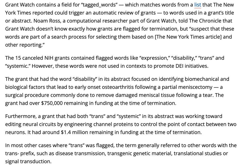 But it is true that if all these grants are cut, it will have a big effect on research output due to killing off early career researchers. It’s clear that the US Government doesn’t give a shit that it’s going to ruin the country’s research credentials.