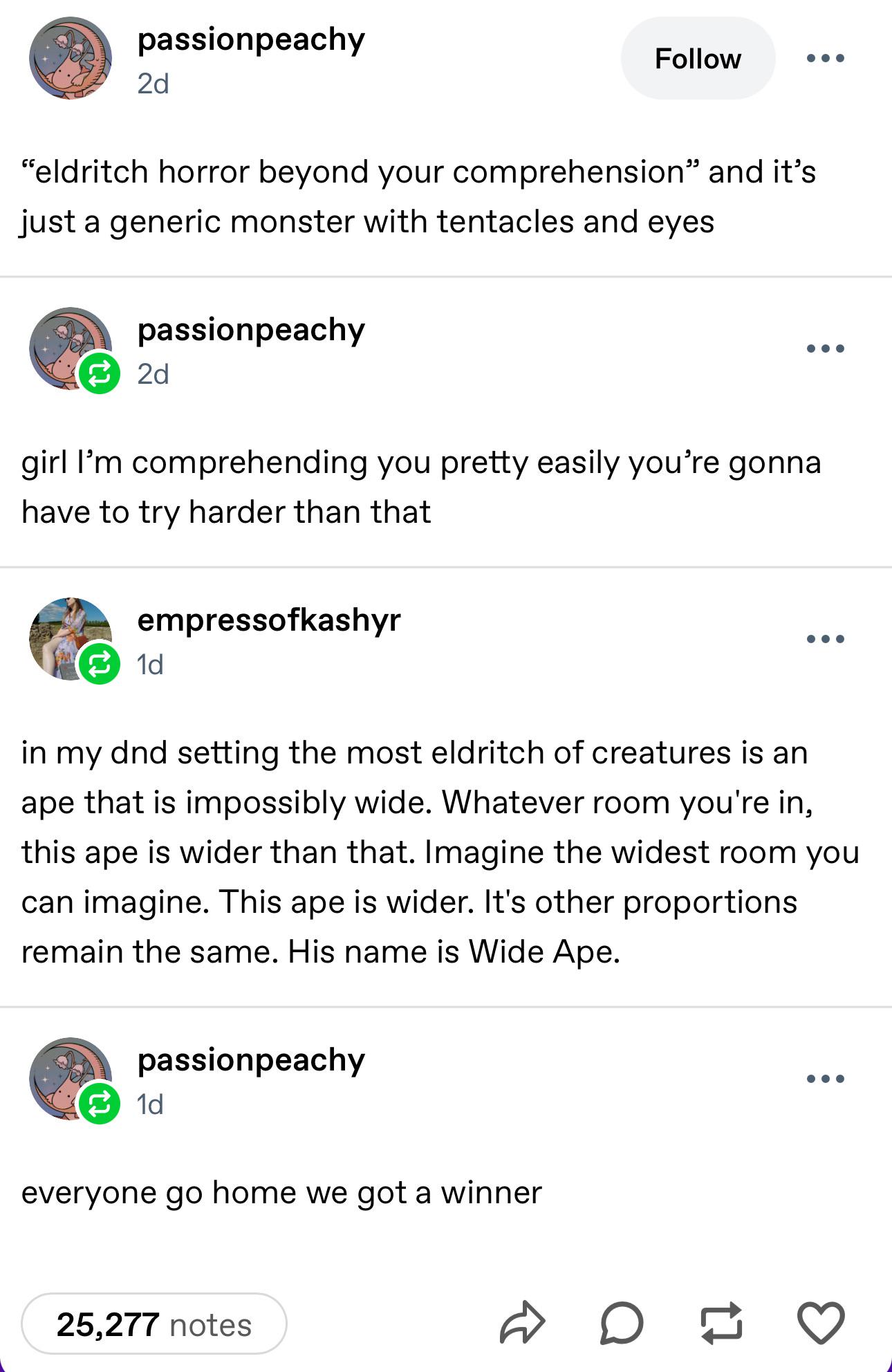 qaz@lemmy.worldM to 196@lemmy.blahaj.zoneEnglish · 4 months agoeldritch horror within comprehension rulelemmy.worldimagemessage-square36fedilinkarrow-up1552arrow-down15