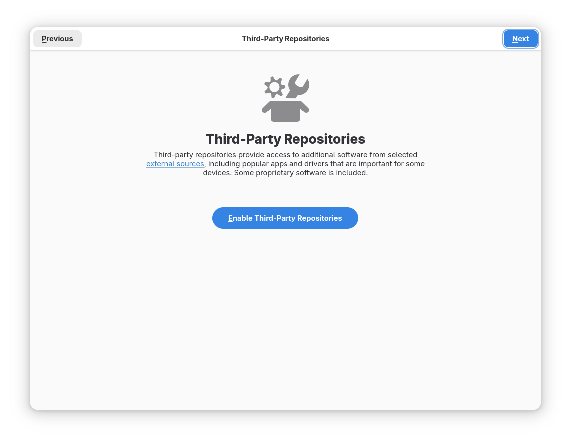 Indeed. I believe most users will just switch to flathub. Sort of how most users will install some codecs, but it can’t legally be included in the base install.