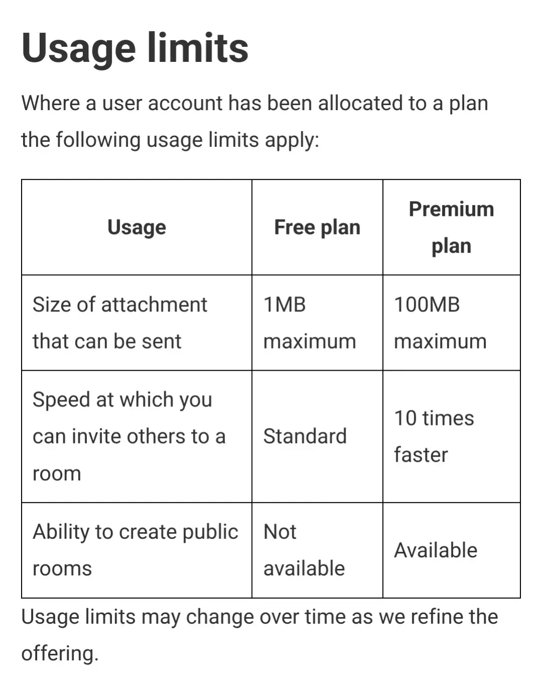 And 100 MB if I pay? Wtf, what year is this, 2002?It’s reality. They’re not using ads or any other unethical means of profit seeking. Imagine if everyone started using Matrix and no one paid, where do you suppose the money should come from to pay for the servers? It’s like going to the grocery store and being outraged that fruit has a price tag; “what the fuck, I can’t just take this?”