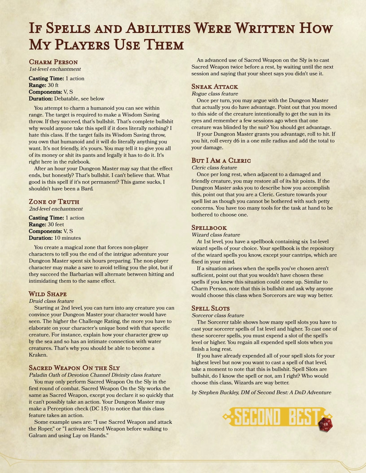 My favorite thing for DMing a Pathfinder game for a guy that only listens to Critical Role. “That’s not how it works in DnD. This is bullshit. I wouldn’t have taken it if I knew it worked differently.”