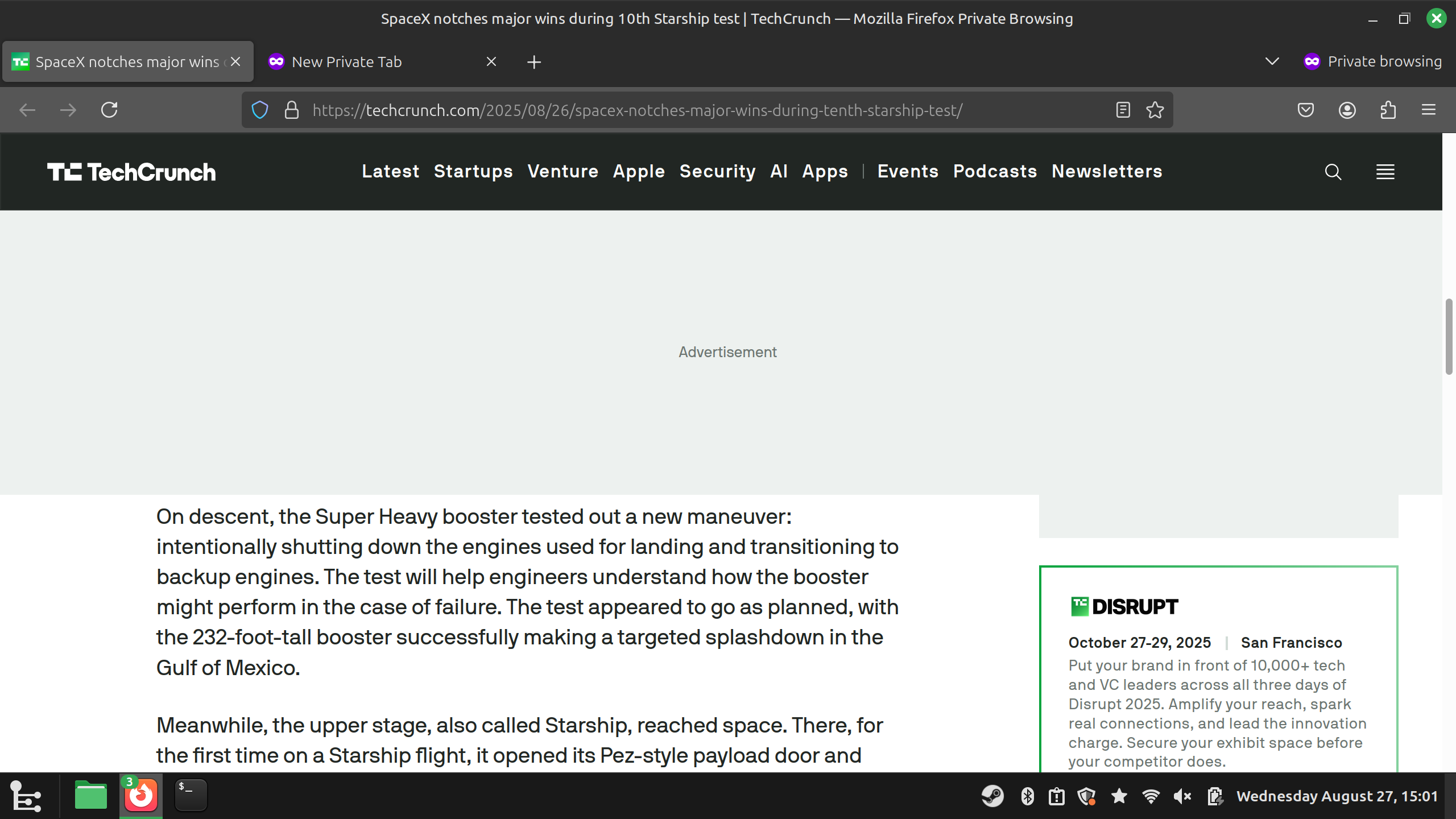 Link to the article: https://techcrunch.com/2025/08/26/spacex-notches-major-wins-during-tenth-starship-test/