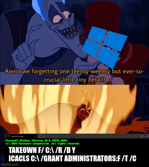 FR, like I know why Microsoft started wrestling away control from end users but dammit I NEED those priveledges for myself