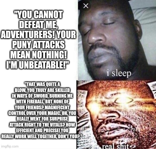 🦎: “Hey, I’m not saying there’s anything wrong with your swordwork, I just think you could do better.”