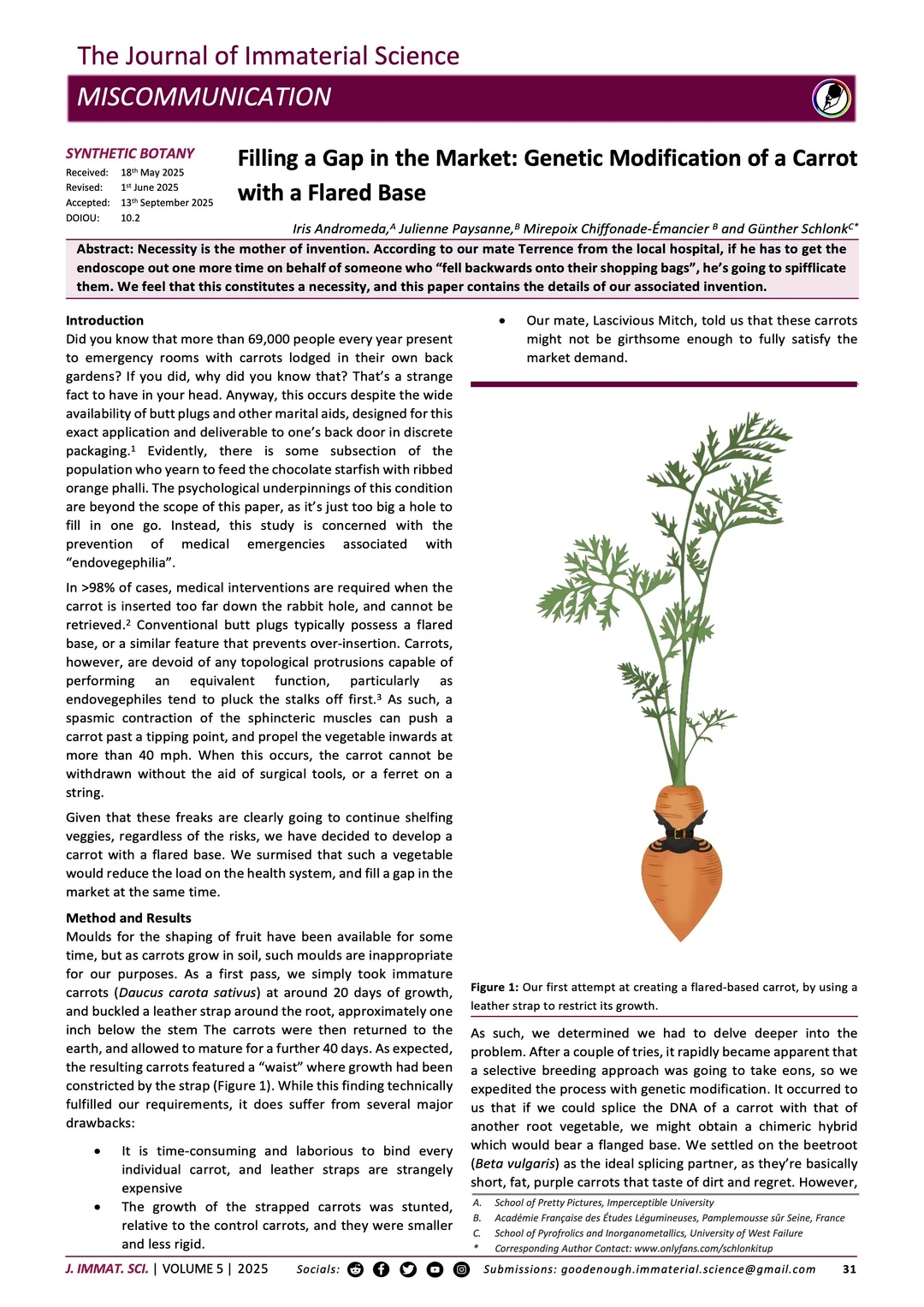 qaz@lemmy.world to Science Memes@mander.xyzEnglish · 21 days ago“Filling a Gap in the Market: Genetic Modification of a Carrot with a Flared Base”lemmy.worldimagemessage-square22fedilinkarrow-up1300arrow-down12file-text