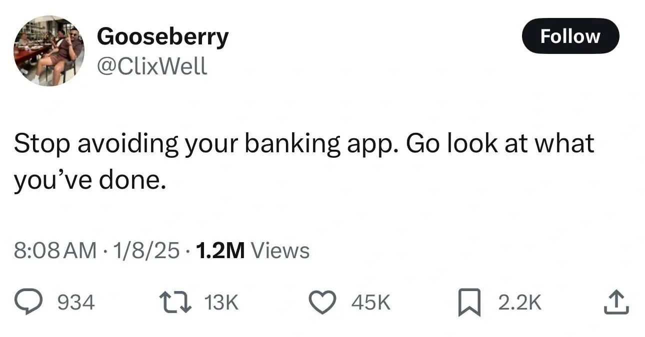 minus-squareSuzyQ @lemmy.dbzer0.comlinkfedilinkEnglisharrow-up16·24 days agoAll it does is tell me I’m broke. I know this already. I don’t need to be reminded again…