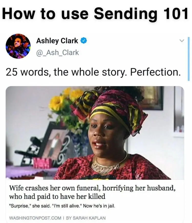 “Überraschung”, sagt sie, “Ich lebe noch.” Er ist jetzt inhaftiert.