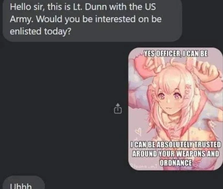 Back during DADT, I got off the recruiters’ list by asking “I know you take men in your army, but did you have yo be born that way?” Recruiter hung up and that was the last time the armed forces tried to recruit me.