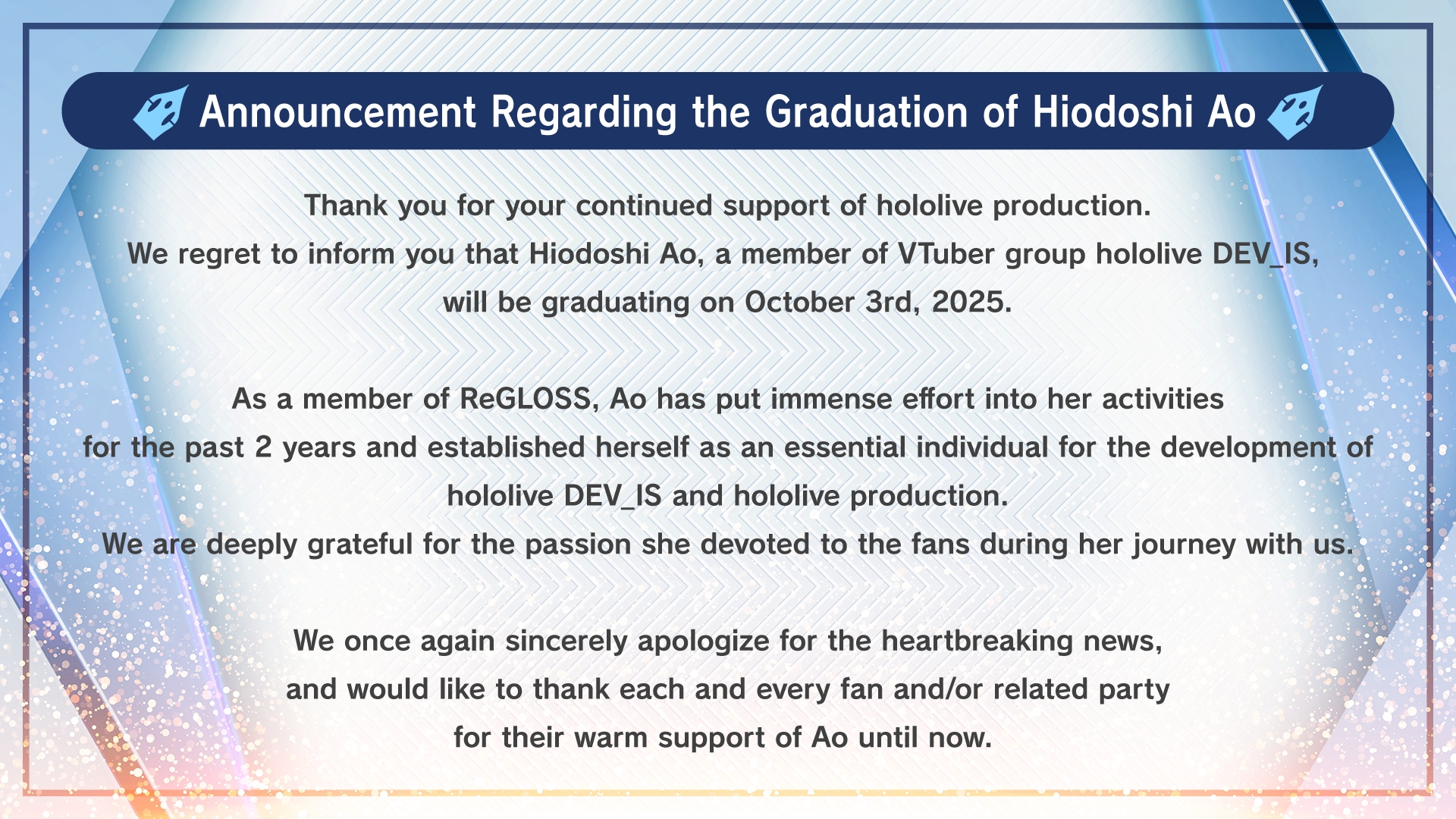 It’s always a shame when members have to graduate for health reasons especially when they don’t get a proper goodbye but hopefully now without the pressure of having to return she can recover in her own time