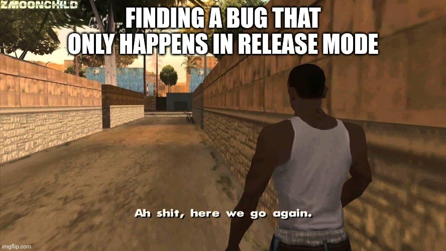 Or something about packaging. Or I used a function that has a different implementation for debug mode out of its intended purpose. Or