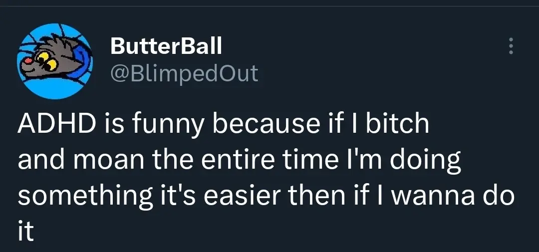 Stamets@lemmy.dbzer0.com to ADHD memes@lemmy.dbzer0.comEnglish · 14 days agoPower of Complaintslemmy.dbzer0.comimagemessage-square2fedilinkarrow-up1214arrow-down13