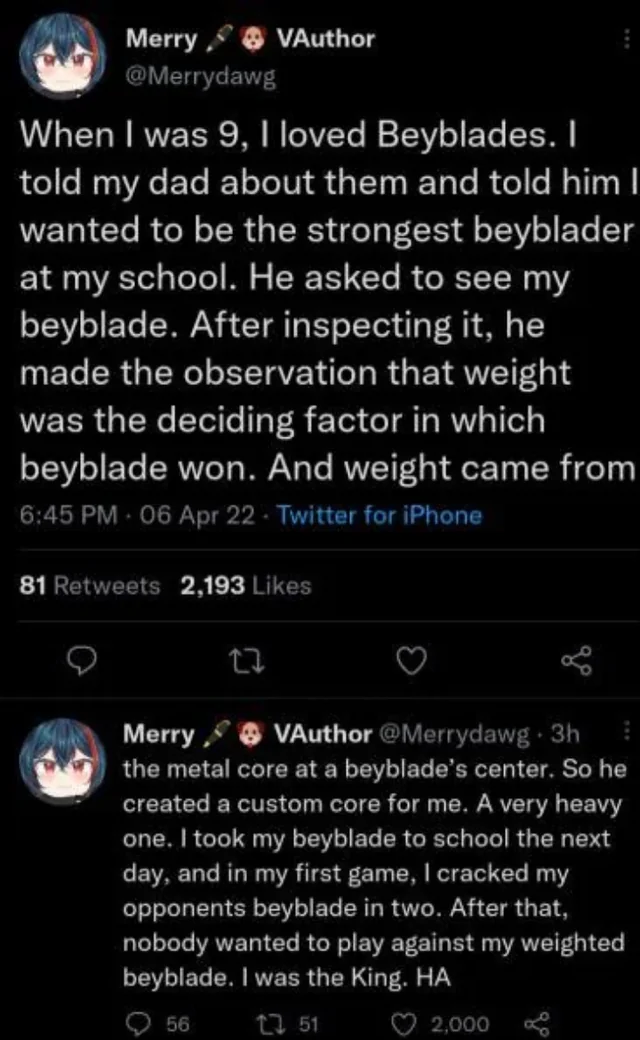 As a kid, my friends also realized this. We started using glue guns to glue more weight disks on our beyblades. It turned into an arms race lmao. It didn’t get super crazy since people didnt own that many beyblades but I do remember i had a beyblade with 3 weight disks.