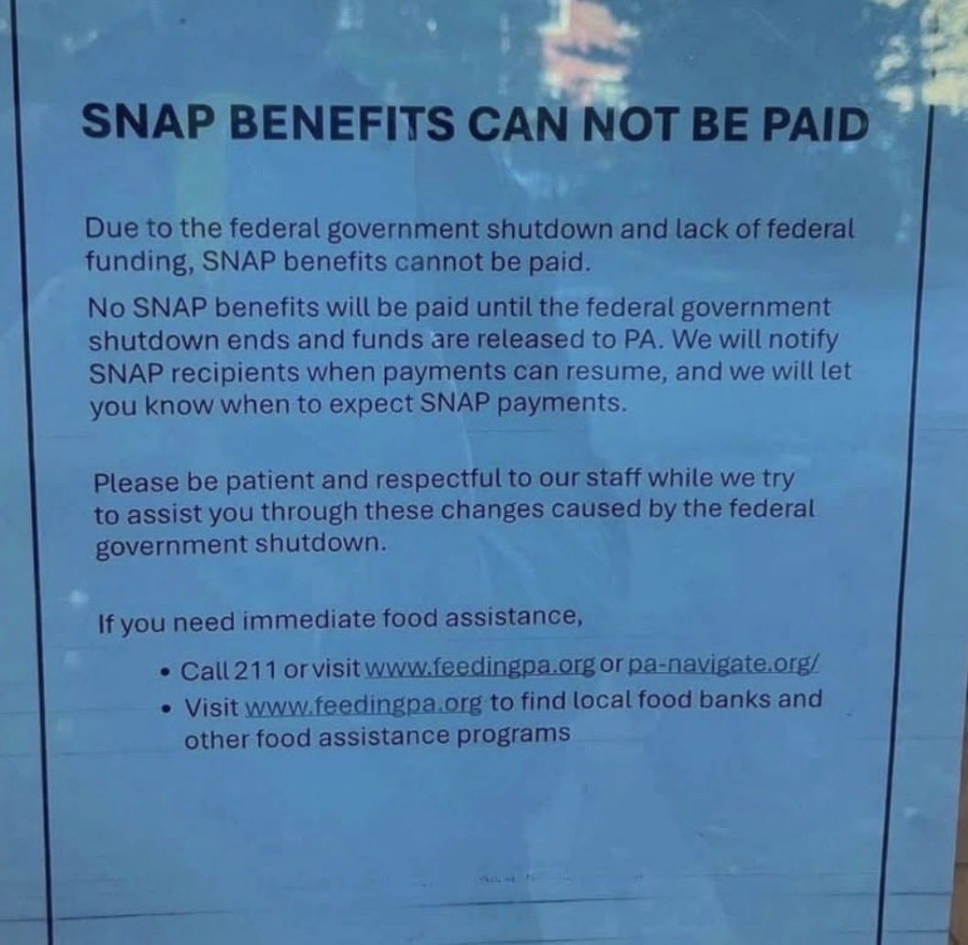 The local foodbanks are so overwhelmed that they restrict access to people who live in the city or county. Our surrounding counties are poorer agricultural ones, some in red states without our state-level welfare funding to offset the loss of federal funding, and their residents will drive hours to use our food banks. We’re really defining the hinterlands with this crash.