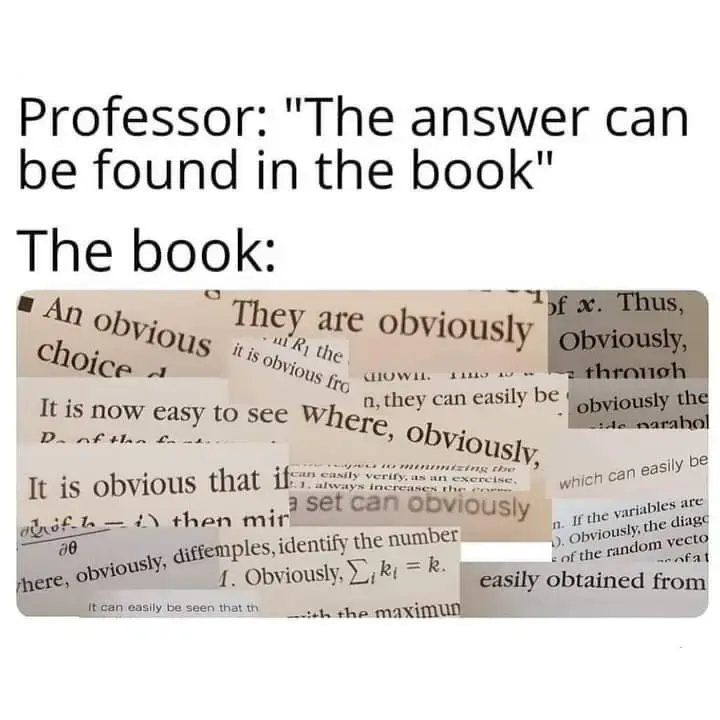 Professor writes a formula on the blackboard. He says “Obviously, this is…” Then he stops, looks at the formula and rushes out of the room.