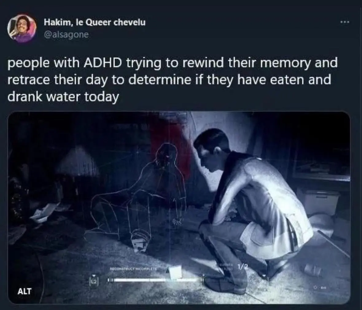 Shit I forgot to drink water today. Pretty sure I don’t have ADHD but you all save my bacon with the meme reminders
