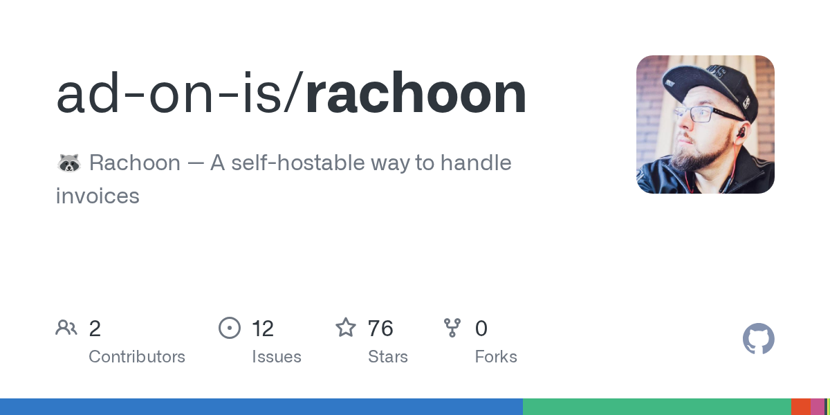 ad_on_is@lemmy.dbzer0.com to Open Source@lemmy.ml · 4 days agoRachoon - Self-Hostable Invoicing made simplegithub.comexternal-linkmessage-square1fedilinkarrow-up124arrow-down10 cross-posted to: foss@beehaw.orgopensource@programming.devselfhosted@lemmy.world