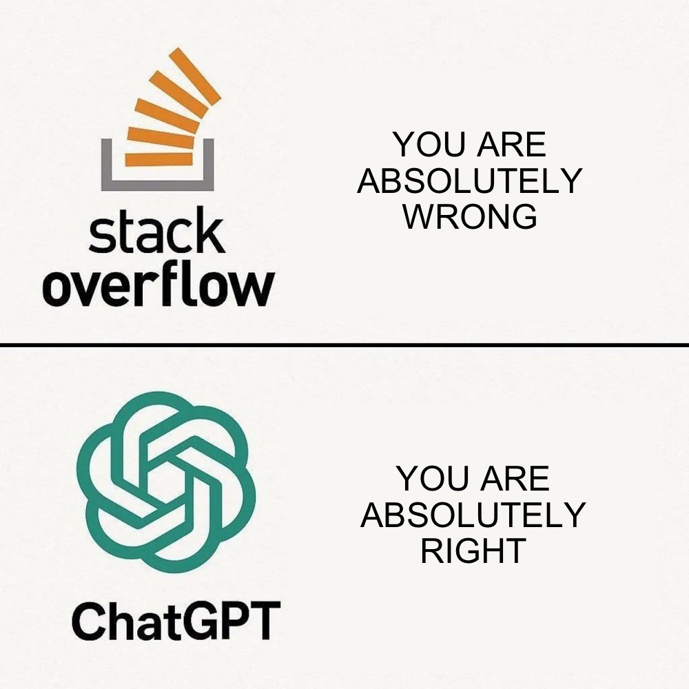 cm0002@infosec.pub to Programmer Humor@programming.dev · 3 days agoStackOverflow vs ChatGPTinfosec.pubimagemessage-square31fedilinkarrow-up1762arrow-down17