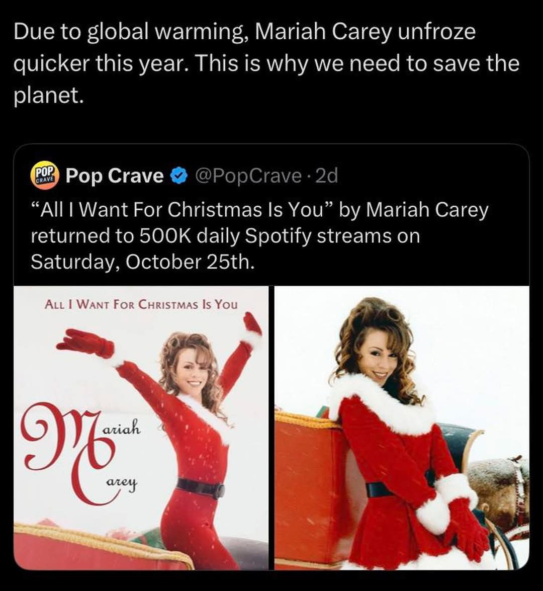 Do you know what that means? We’re closing into a perpetual Mariah Carey season, the Mariahcalypse.