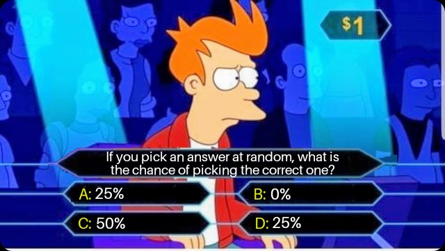 However, two of the answers are 25%. This means you have a 50% chance of picking an answer that’s right.