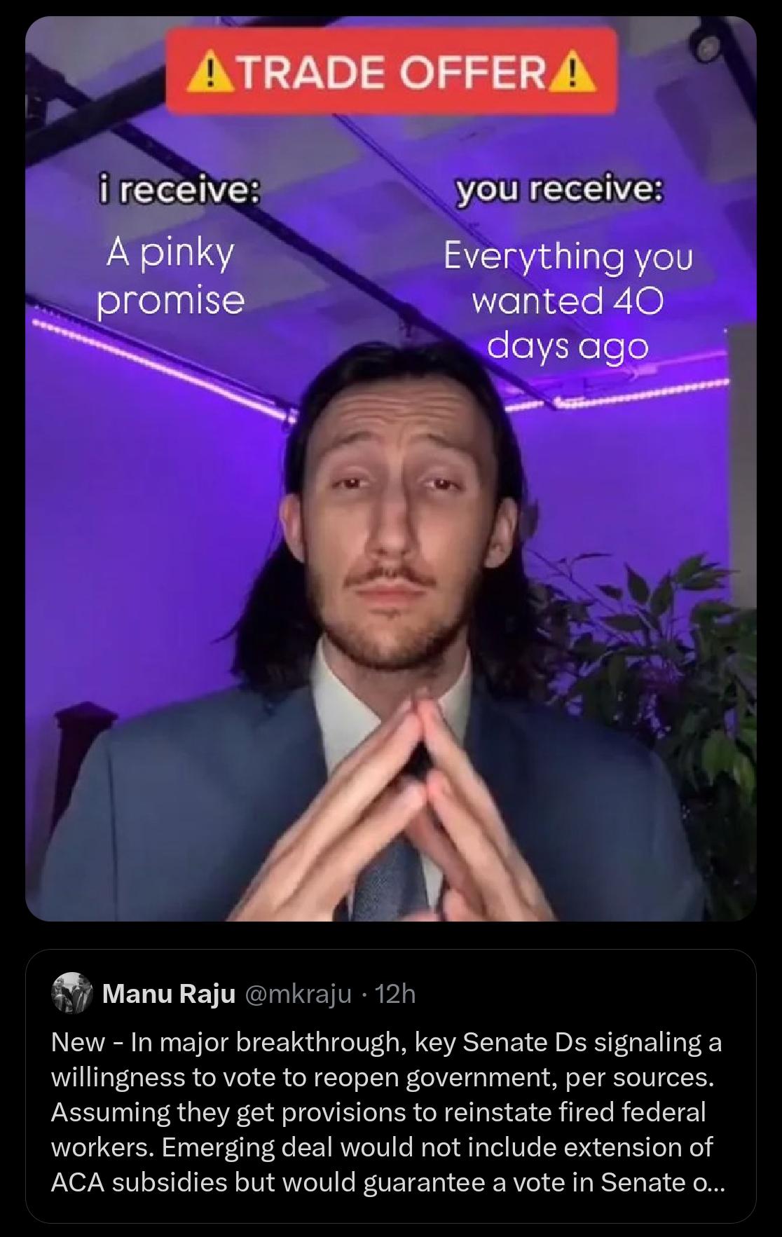 ComradeSharkfucker@lemmy.ml to Memes@lemmy.mlEnglish · 3 days agothey almost used their political powerlemmy.mlimagemessage-square27fedilinkarrow-up1239arrow-down11file-text