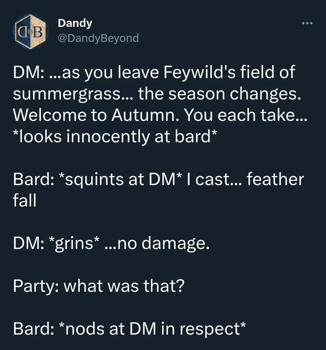 Maybe it would help to know that the Fey are known to delight in wordplay based magical trickery (e.g. the old “Can I have your name?” bit). It’s not just that the pun exists, but that it’s not the DM just making them roll for “fall” damage because he thinks it’s funny, it’s the sort of thing that canonically happens in the Feywild.