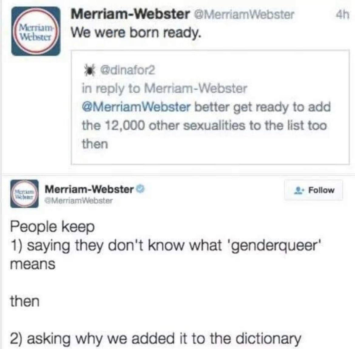An entry in dictionary proves the existence of something. Those people want to deny queer people’s right to live, so they’re upset if an objective medium acknowledges them.