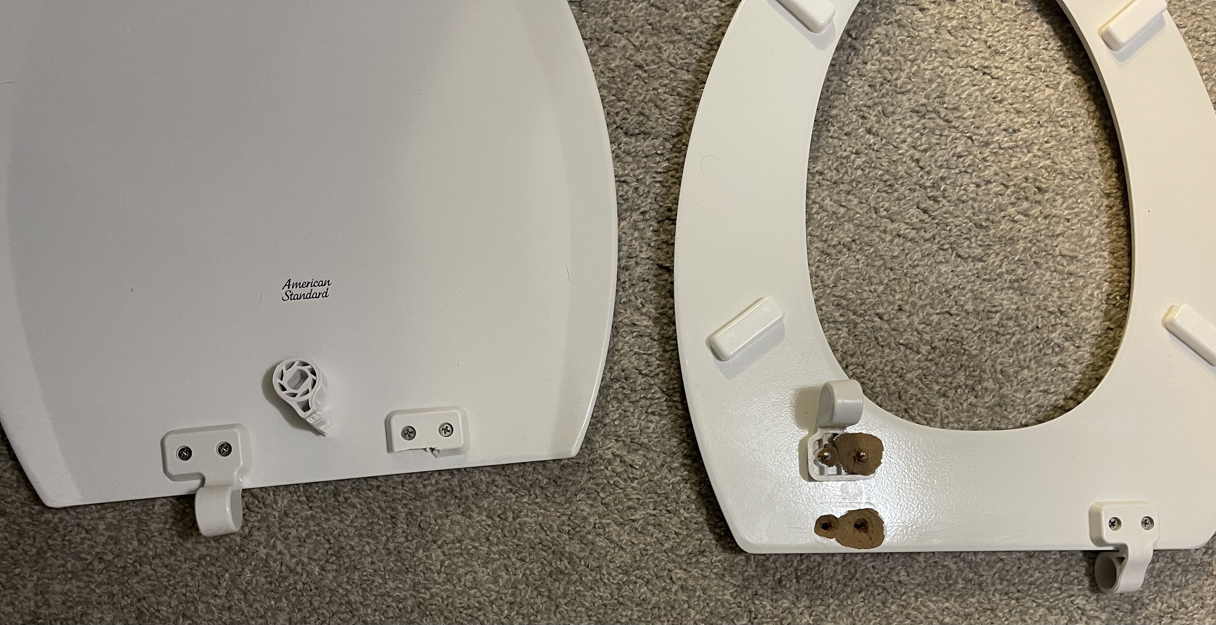 So today, I go get a different toilet seat, and as I’m trying to adjust it to fit on the toilet, I notice that they gave me two left brackets.