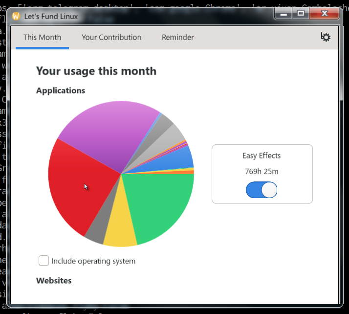 I had this idea recently: if people are willing to pay a small fee monthly for streaming services or Photoshop, surely some would also be willing to pay a similar amount for the FOSS they use. Even a few cents monthly would add up to quite a substantial sum over a vast userbase*. In light of this, I’ve started working on an app that records your app usage, and then at the end of the month splits whatever sum of money you want to donate amongst the apps in proportion to the time you spent using them.
