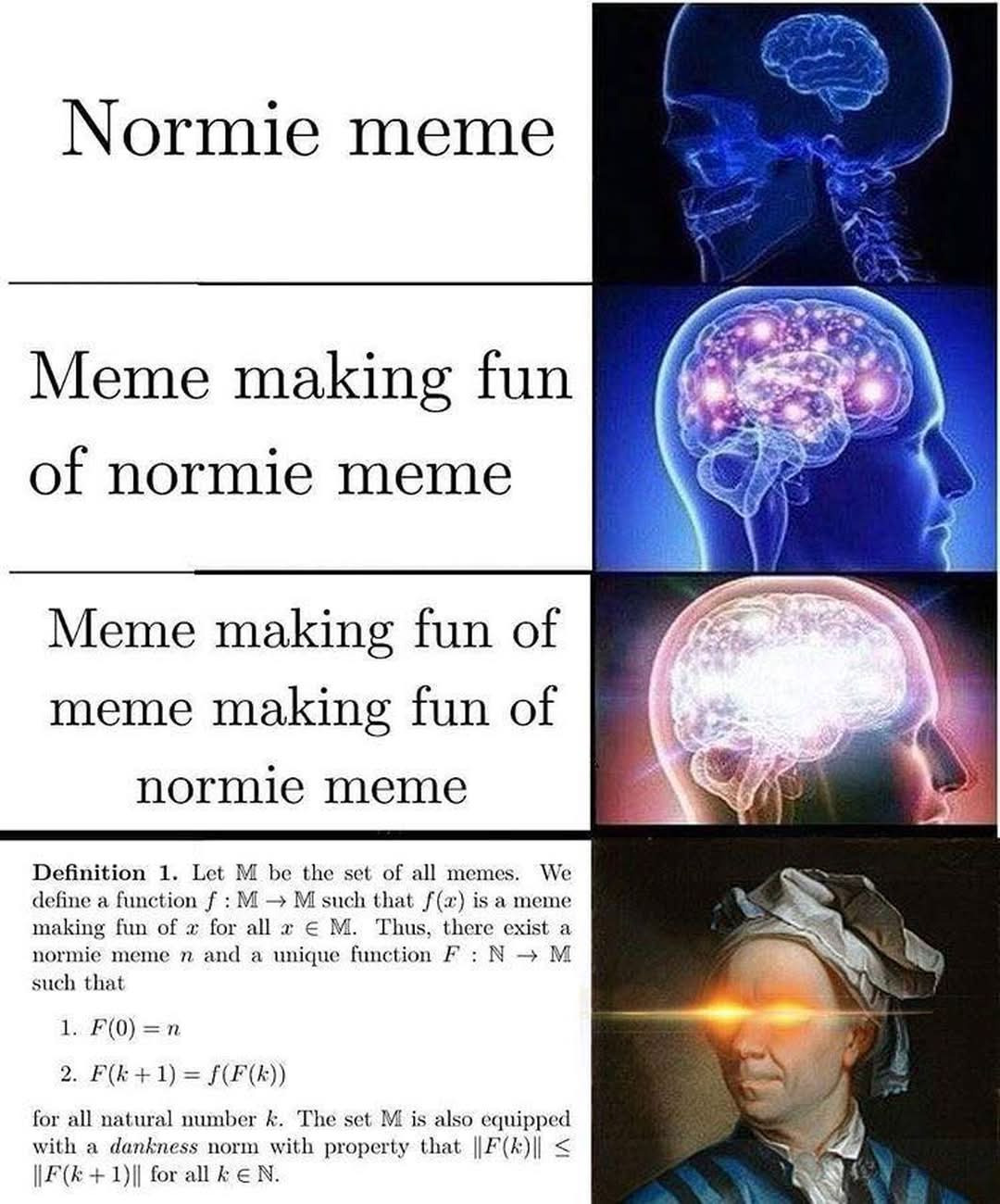 Thus, f∈f, violating the Axiom of Regularity. We conclude the meme is mathematical bullshit and I will not have it.