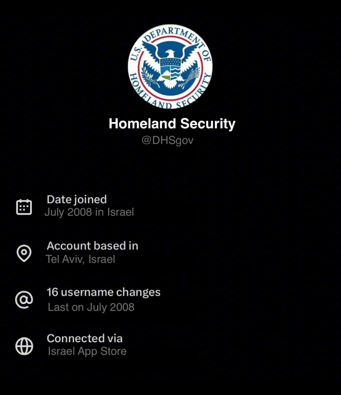 twitter briefly allowed people to see where each account was operated from. turns out, the official DHS account is run from Tel Aviv