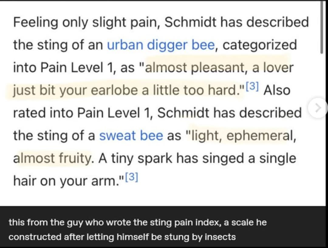 As a trans woman, can confirm, getting electrolysis on the upper lip is the stuff of nightmares. i can’t imagine something as big as a bee stinger hitting you there.