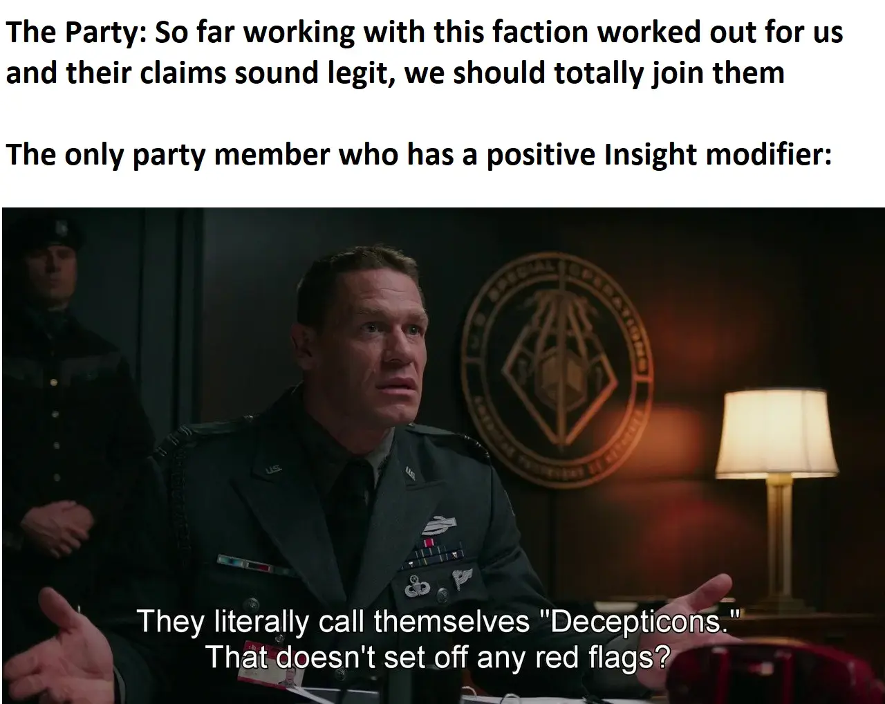 Okay, to be fair I genuinely asked my players this exact question after my last session where they teamed up with the “Totally Not Helldiver Vampires” and got a response that they all knew these guys are sus. They just want to wait for the inevitable betrayal first.