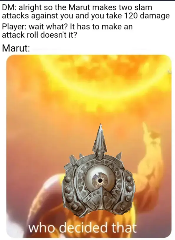 minus-squaremakeshiftreaper@lemmy.worldlinkfedilinkEnglisharrow-up47·2 months agoIf you’re high enough level to have pissed off a Marut that is 100% your fault and you deserve the consequences of your actions