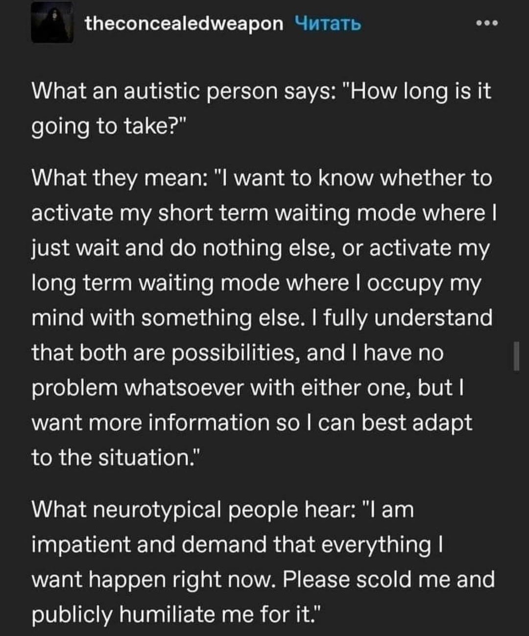 Sometimes neurotypicals assume you’re being needy when all you want is an accurate time frame
