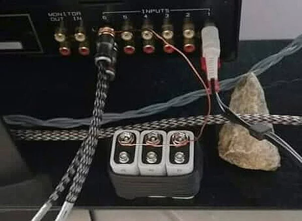 In short, all you need to match the quality of a hi-fi beamforming speaker system can be replaced with a few 9V batteries connected to your tuner with a paperclip. Thanks for coming to my audio engineering TED talk.