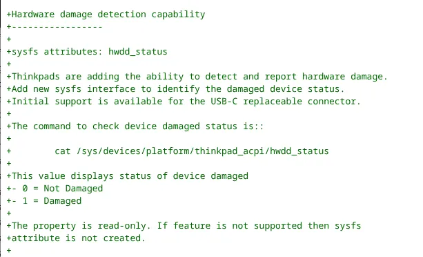 It turns out newer ThinkPads will begin communicating detected hardware damage that can then be parsed by the OS. A new patch to Lenovo’s ThinkPad ACPI open-source driver explains: