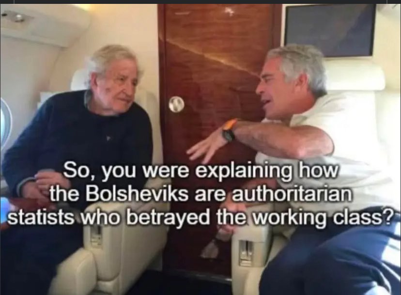 To me though it really illustrates how Chomsky was really an ivory-tower elitist. If there was ever proof that left wing ideas only matter when they lead to taking effective action in the struggle for liberation, then Chomsky’s unrepentant associations with Epstein are a shining example. As if many of his “left wing” positions weren’t already problematic enough, he made sure to put on full display whom is the real subject of his work, and it isnt the toiling and exploited classes. I have some ideological differences with him, but thankfully we don’t need to worry about that. His actions speak to the actual nature of his ideas, so we need only gesture toward this photo as proof of how he demolished his own legacy, and how he doesnt deserve a place among those who actually struggle to educate people about the truth of our conditions.