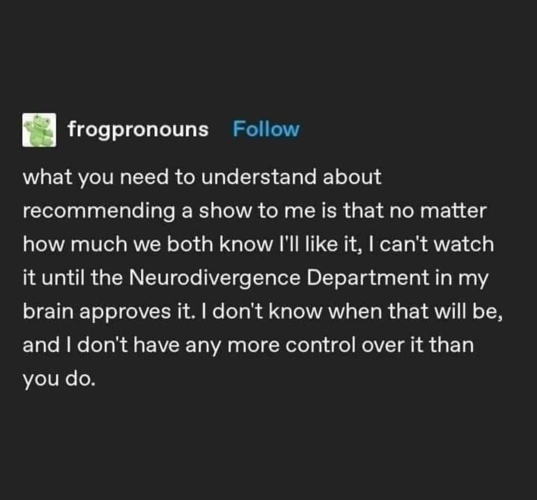 arrow-up1251arrow-down1imageNot got that controlpiefed.cdn.blahaj.zoneLadyButterfly she/her@piefed.blahaj.zone to Autism@lemmy.worldEnglish · 3 days agomessage-square11fedilink