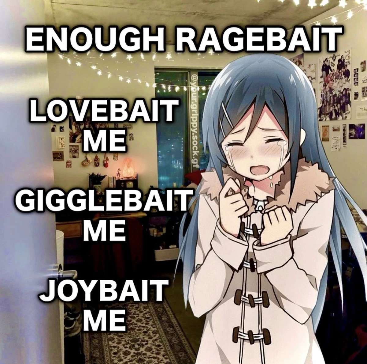 zippy@ani.social to Femcel Memes@lemmy.blahaj.zoneEnglish · 4 days agoNo more ragebaitani.socialimagemessage-square20fedilinkarrow-up1330arrow-down18