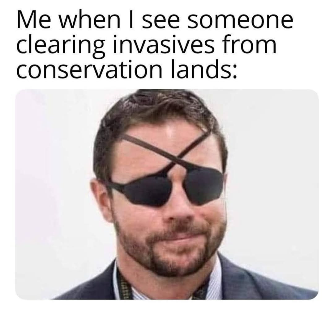 It specifically mentions the meme creator seeing someone “cleaning invasives”, implying that all people involved have some level of competence and know what’s going and that there isn’t any reason to pretend to be a blind pirate.