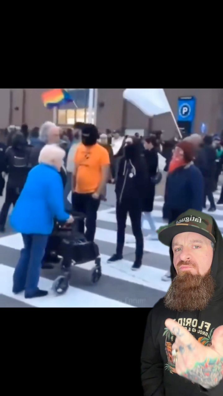 It’s a (rage bait AI ?) video of an old lady trying to cross the street through an ongoing riot. And there are some protestors intentionally blocking her way. After this clip, there is a guy explaining how empty inside those people are.