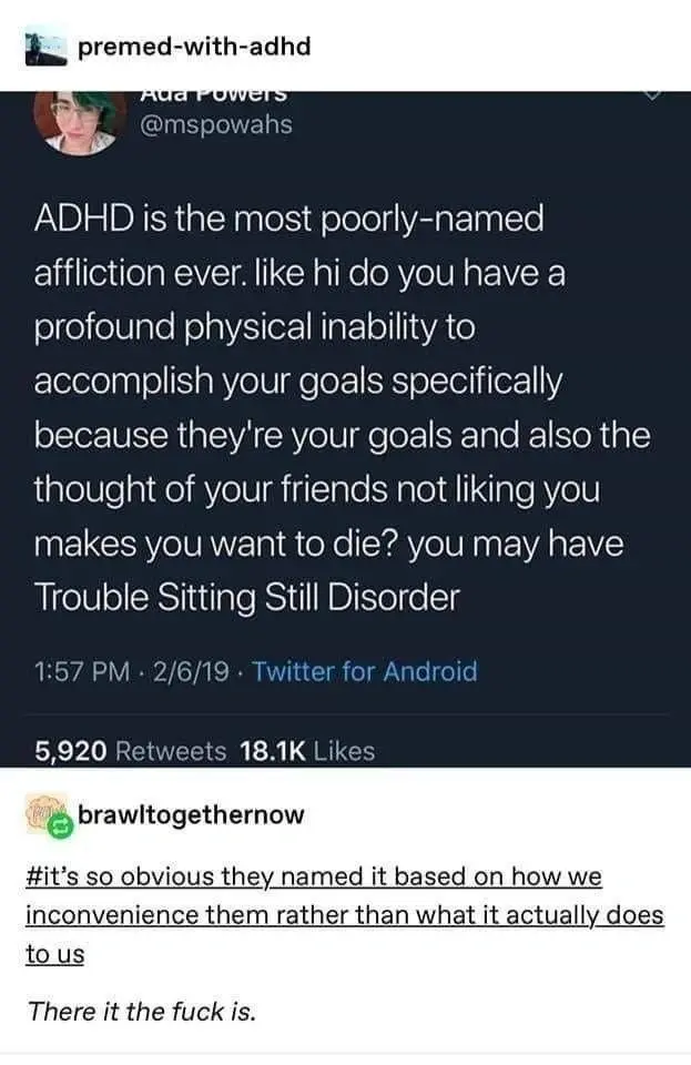 arrow-up1670arrow-down1imageSounds about rightlemmy.dbzer0.comStamets@lemmy.dbzer0.com to ADHD memes@lemmy.dbzer0.comEnglish · 2 months agomessage-square39fedilink