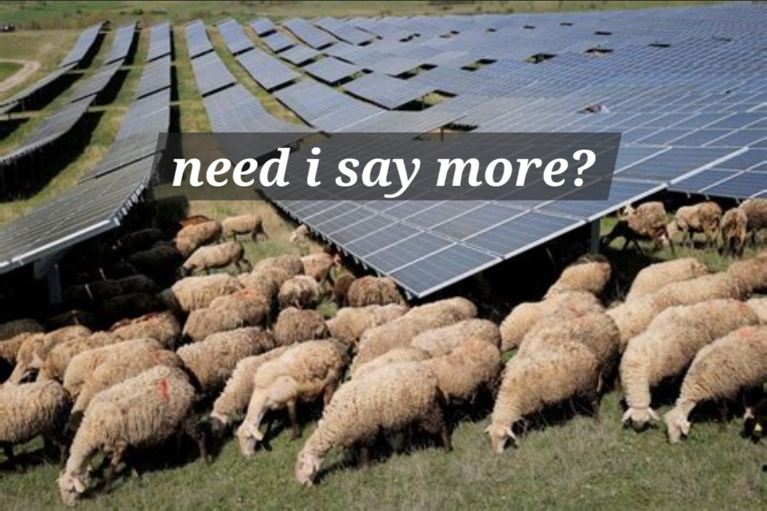 Fun tidbit, Sheeps, wanting to hold up to their fame have made a number on engineers trying to get them to live with solar panels :