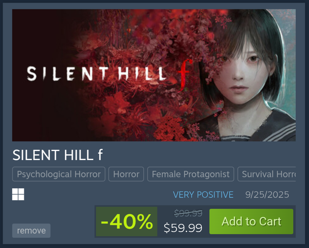 I had the same confused reaction but its actually 40% off of silent hill f and silent hill 2 as a bundle. The math works for the bundle.