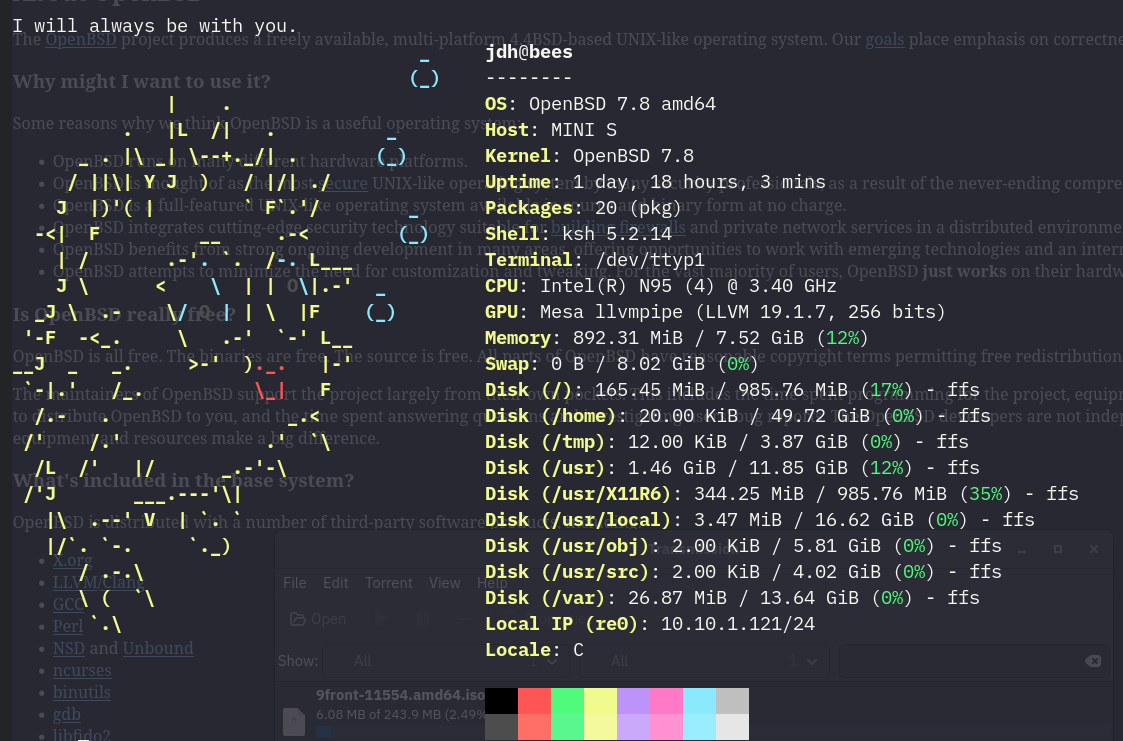 arrow-up1107arrow-down1imageRecently installed OpenBSD thanks to this comm. Tried to recreate one of my favorite scenes.midwest.socialthe_weez@midwest.social to unix_surrealism@lemmy.sdf.orgEnglish · 6 days agomessage-square8fedilinkfile-text
