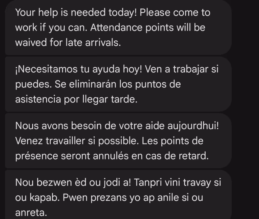 This is just funny at this point. Yes they send every text in multiple languages which gets annoying when my phone goes off 8 times cause they want to tell people when someone is here to discuss benefits.