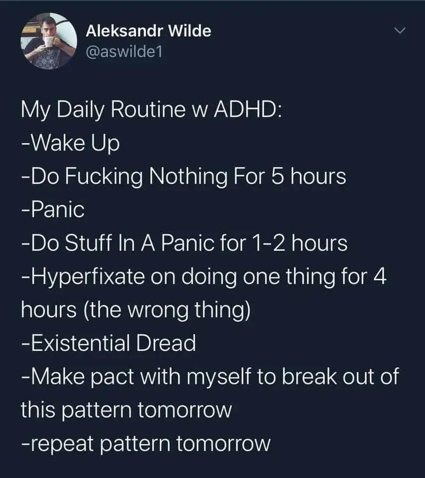 arrow-up1645arrow-down1imageIt's a livinglemmy.dbzer0.comStamets@lemmy.dbzer0.com to ADHD memes@lemmy.dbzer0.comEnglish · 23 days agomessage-square22fedilink